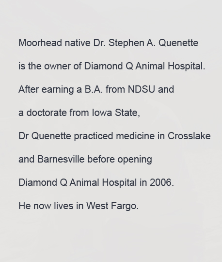 Diamond Q Animal Hospital is a dog and cat treatment center that opened in 2006 to serve the greater Fargo-Moorhead-West Fargo Area. We strive to provide exceptional service, results, and care to both our two-legged and four-legged clients.